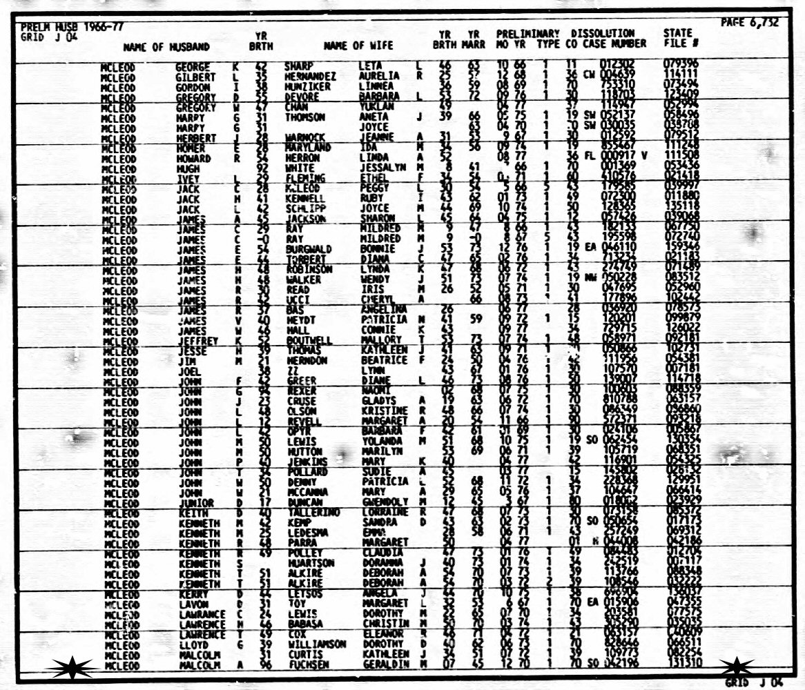 Married: (1) Malcolm A Mcleod before 1970. (Divorce: December, 1970, Los Angeles, Los Angeles County, California.)
