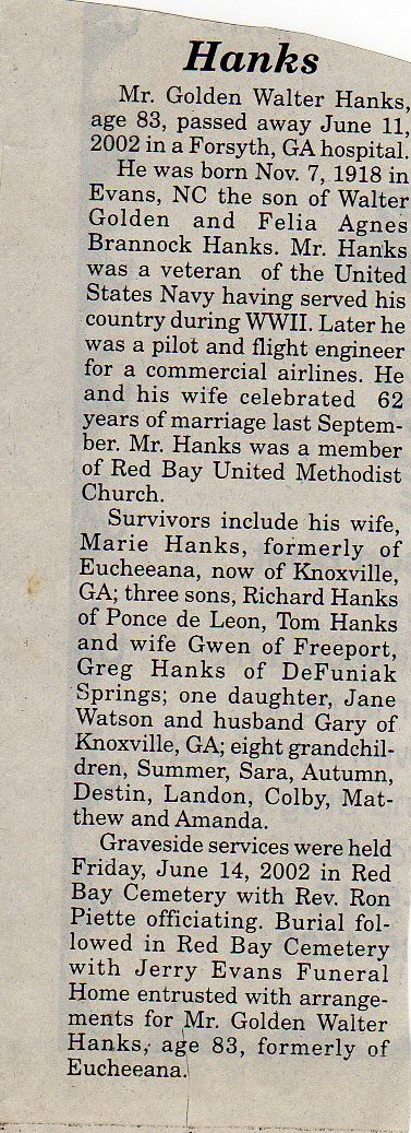 Notes for GOLDEN WALTER "WALLIE" HANKS: