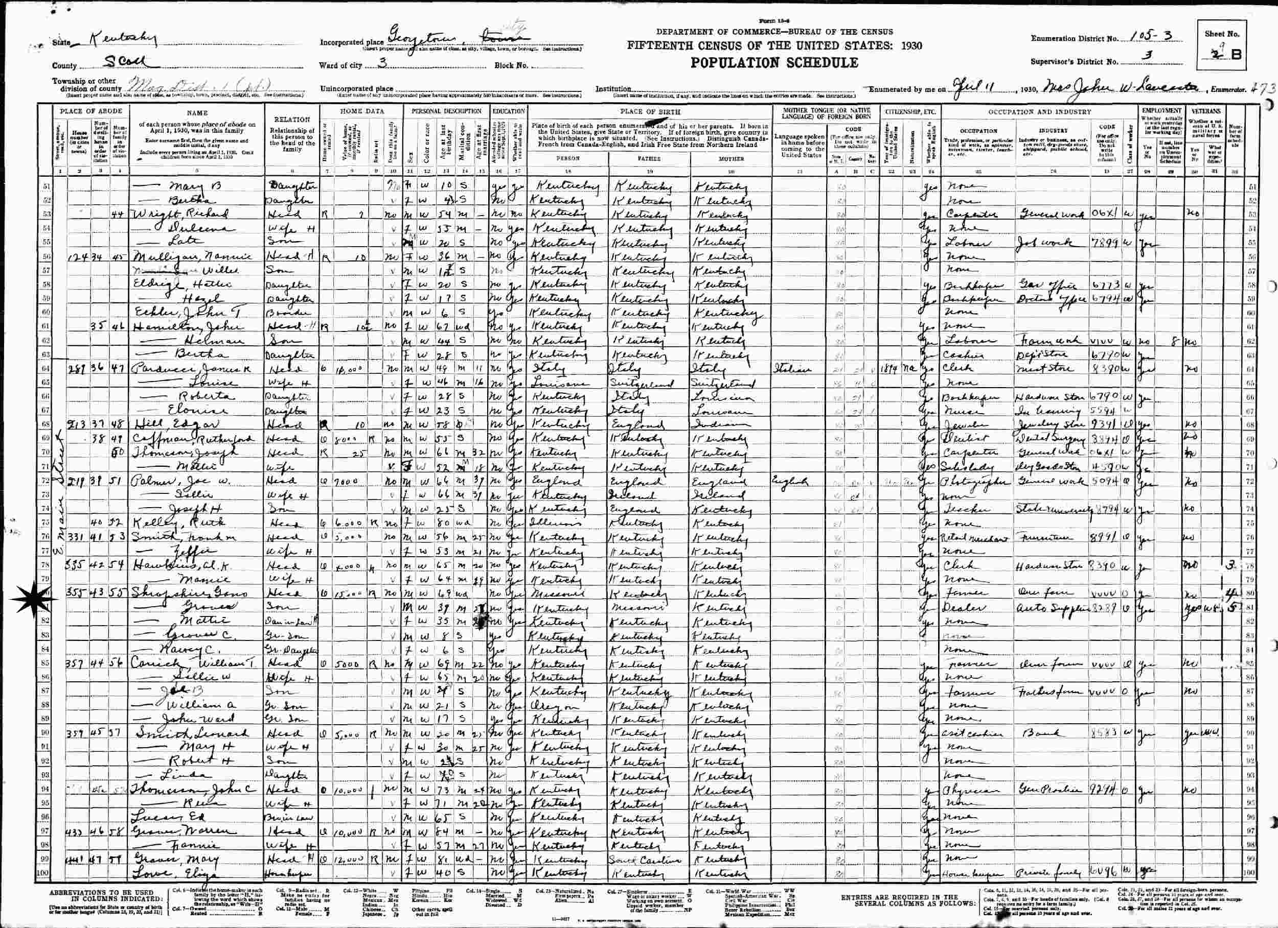 April 11, 1930 - 355 E Main Street, Ward 3, Supervisor's District 3, Enumeration District 105-3, Georgetown, Scott County, Kentucky.