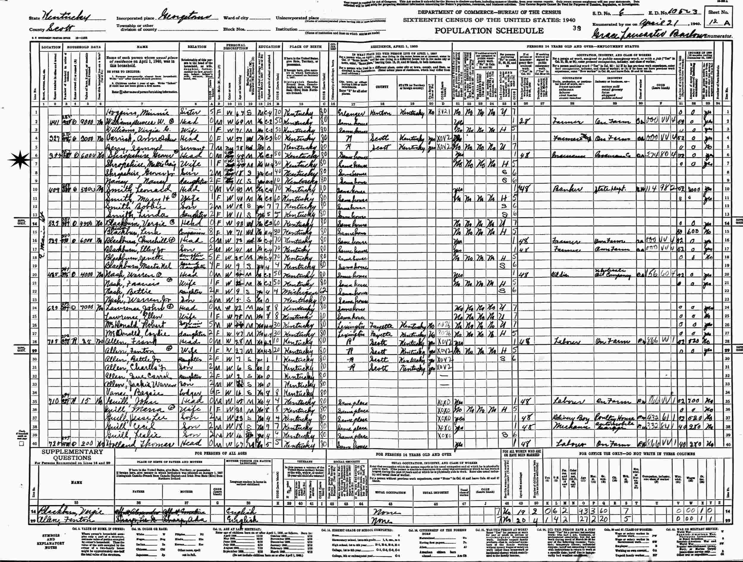 April 21, 1940 - 355 E Main Street, Supervisor's District 4, Enumeration 105-3, Georgetown, Scott County, Kentucky.
