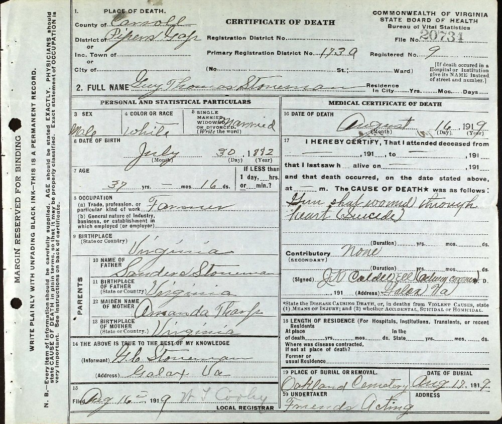 Died: August 16, 1919 in Pipers Gap, Carroll County, Virginia.