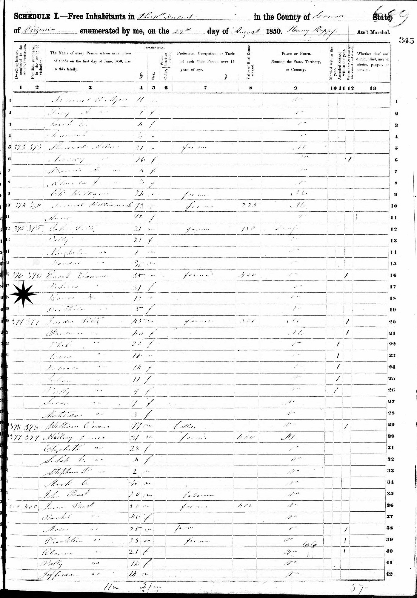 June 29, 1850 - District 11, Carroll County, Virginia.