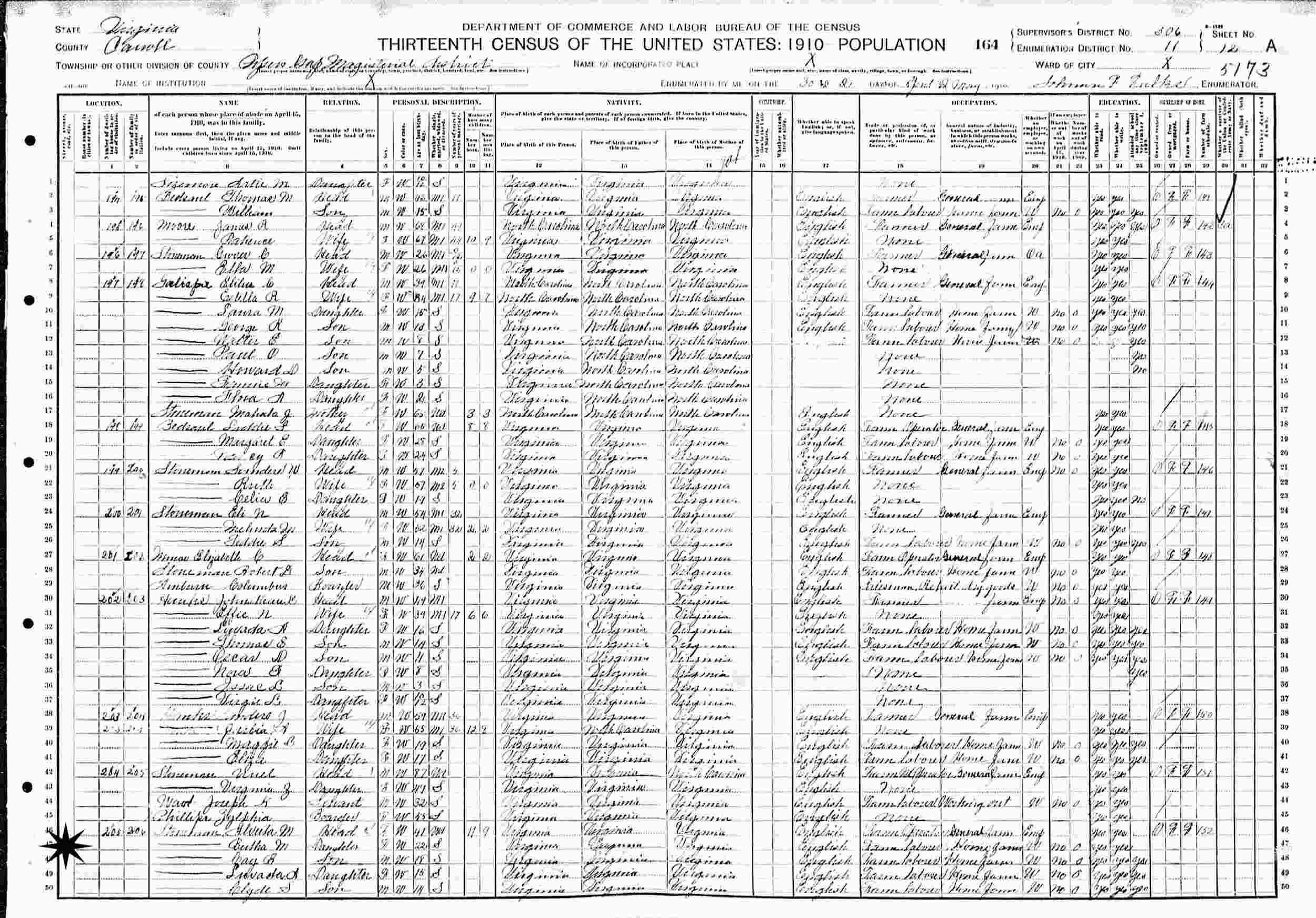 May 2-3, 1910 - Pipers Gap Magisterial District, Supervisor's Districtr 306, Enumeration District 11, Carroll County, Virginia.