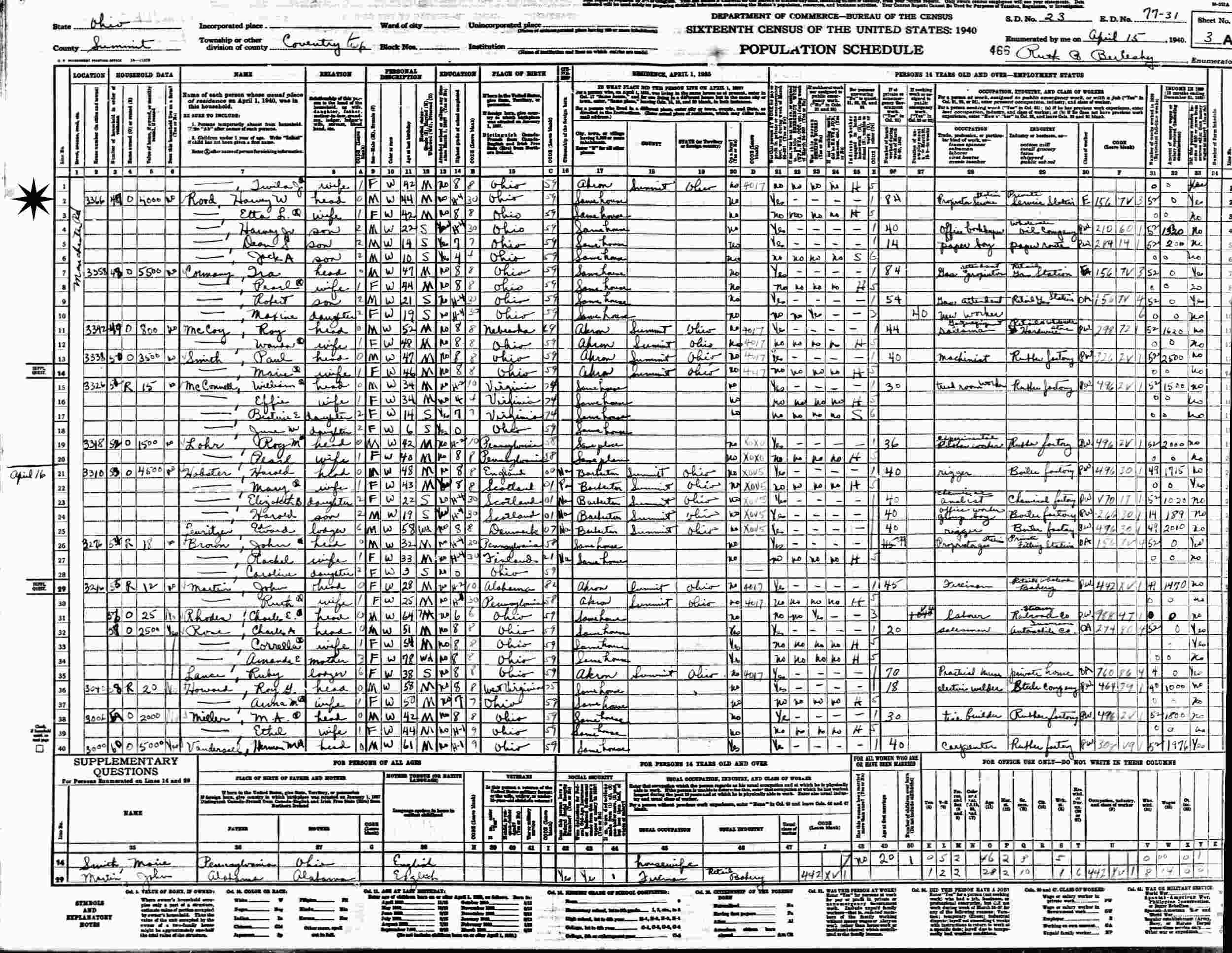 April 15, 1940 - 3366 Manchester Road, Supervisor's District 23, Enumeration District 77-31, Coventry Township, Summit County, Ohio.