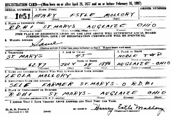 June 5, 1917 - St. Marys, Auglaize County, Ohio.