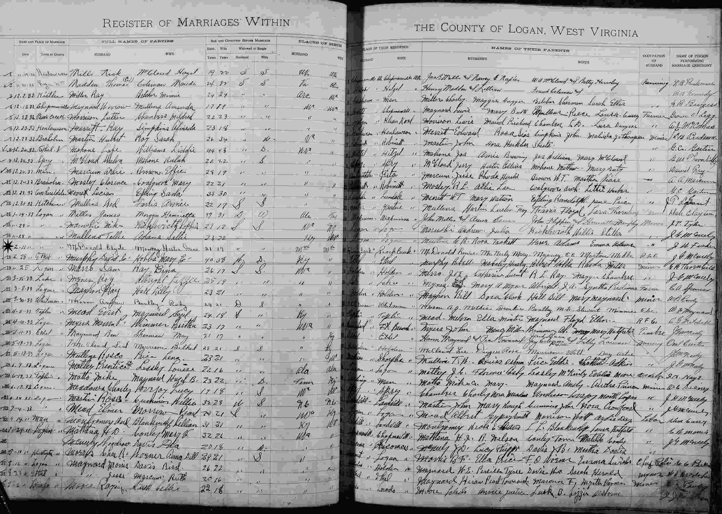Married: Clyde Orvil McDonald February 11, 1933 in Logan County, West Virginia.