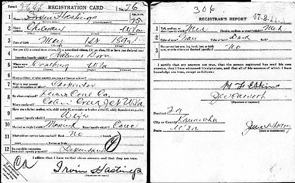Notes for IRVIN STOVER HASTINGS, SR.: