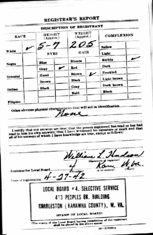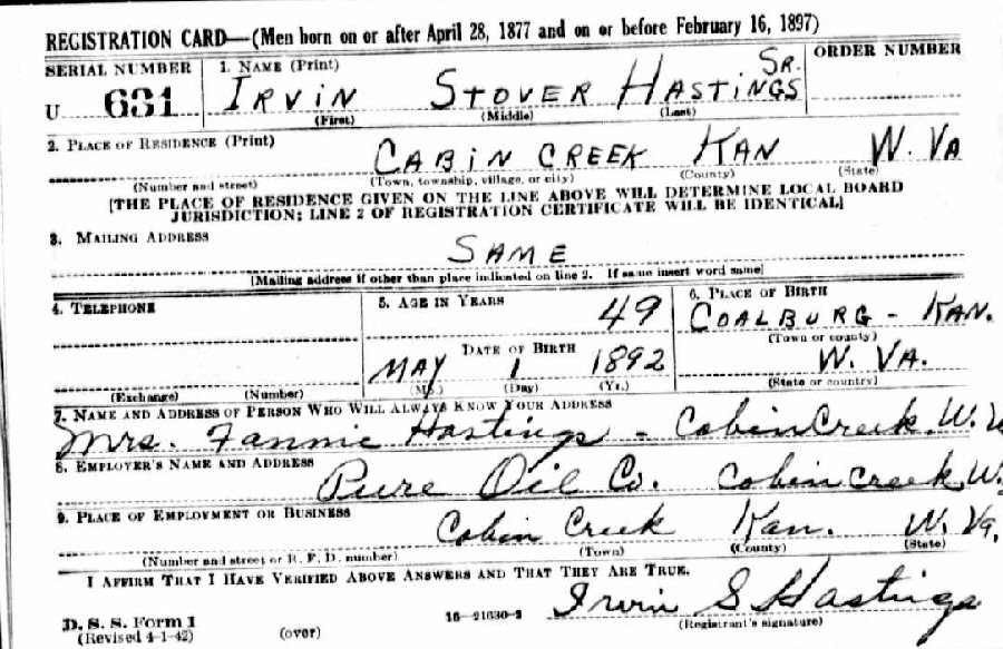 Born: May 1, 1892 in Coalburg, Kanawha County, West Virginia.