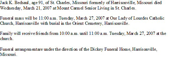 Notes for JACK K BEDSAUL: