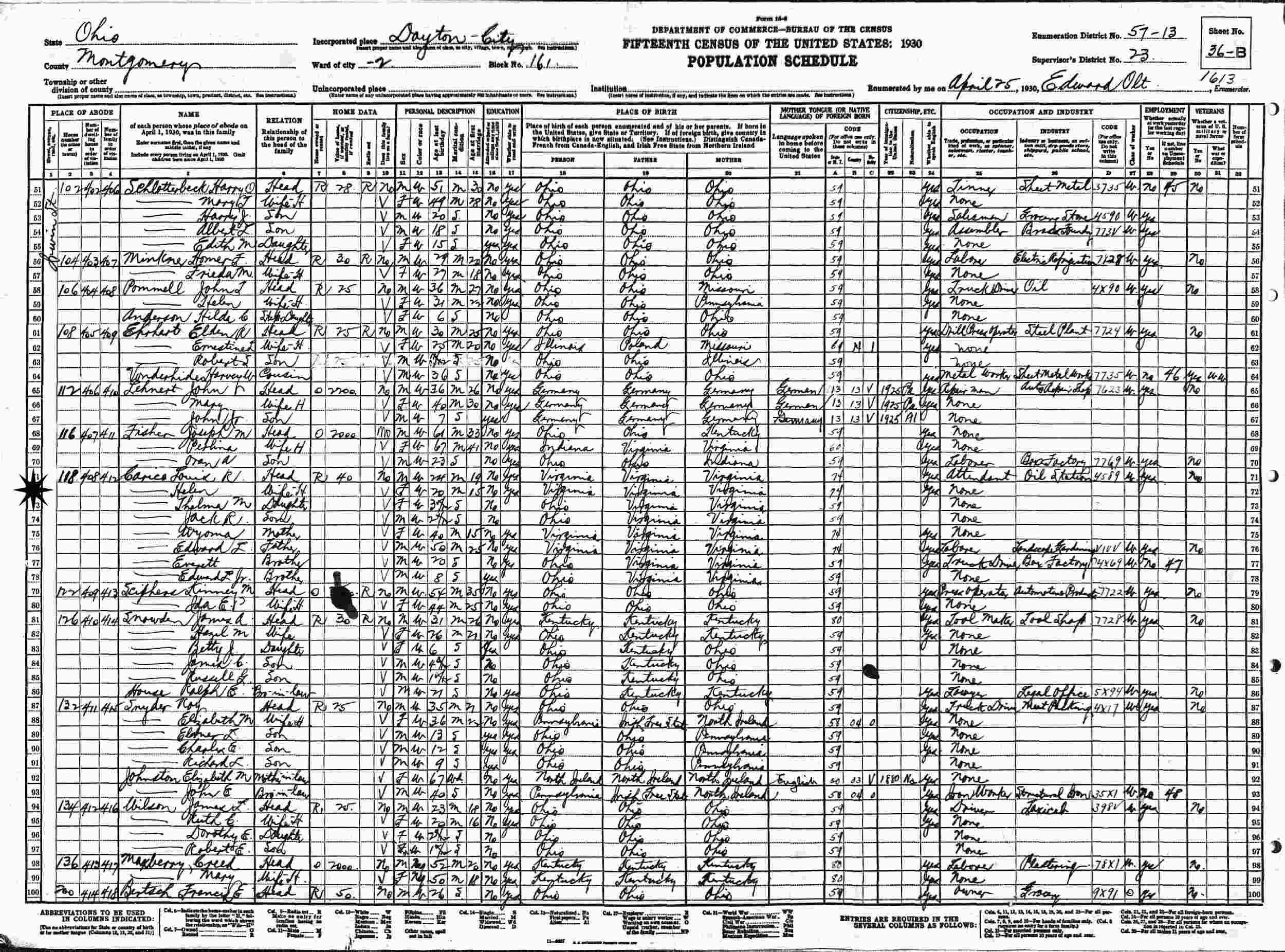 April 25, 1930 - 118 Irwin Street, Ward 2, Block 161, Supervisor's District 23, Enumeration District 57-13, Dayton, Montgomery County, Ohio (w/paternal grandparents).