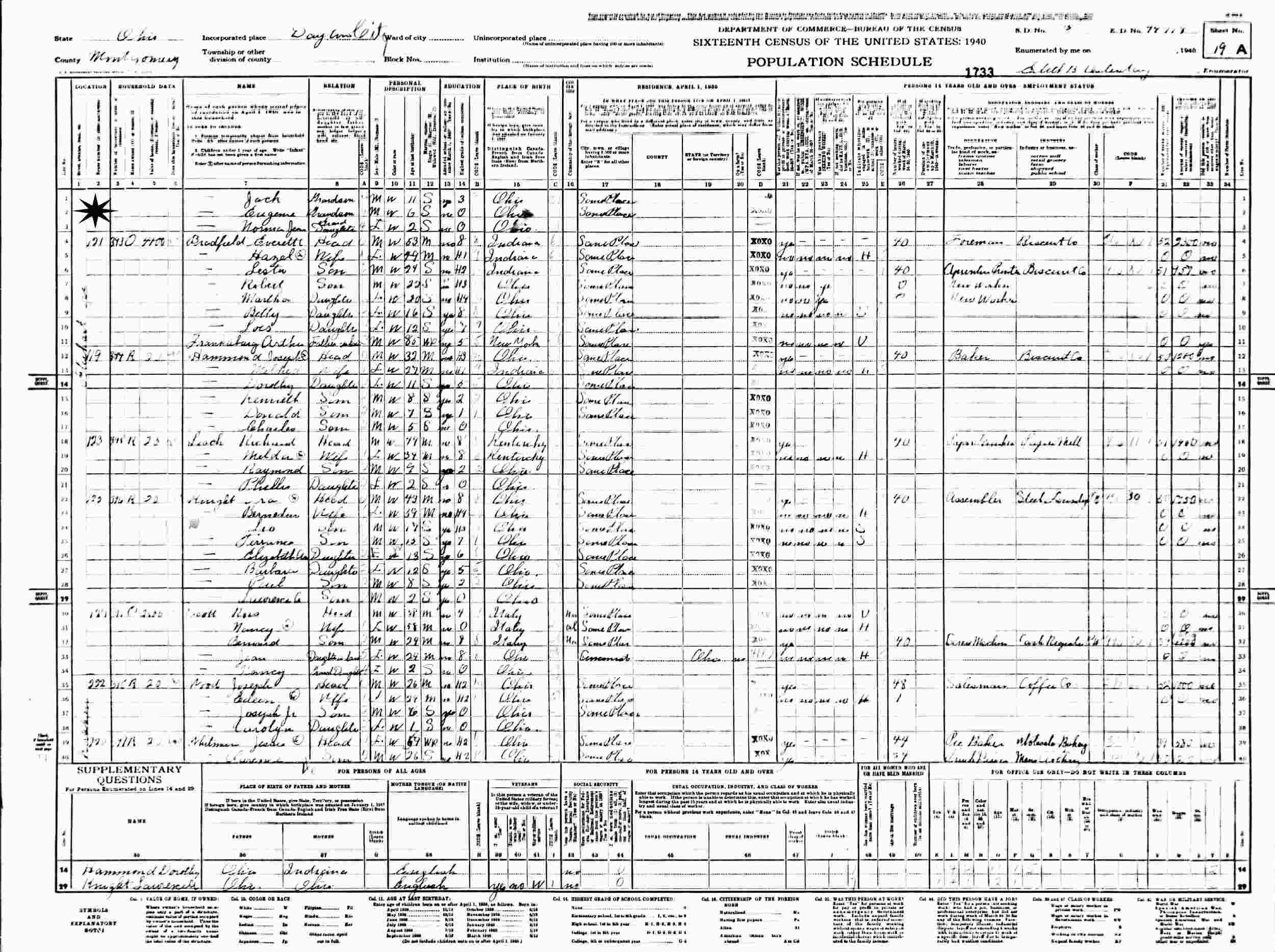 April 18, 1940 - 115 Regal Street, Block 12-13, Ward 7, Supervisor's District 3, Enumeration District 94-117, Dayton, Montgomery County, Ohio (w/paternal grandparents).