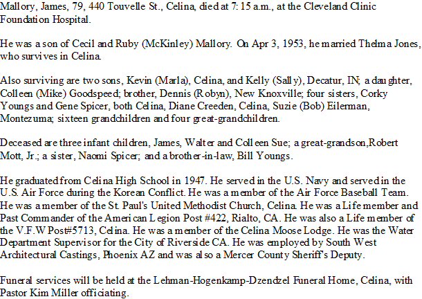 Son of Cecil Dale and Ruby Thayer (Minckley) Mallory.
