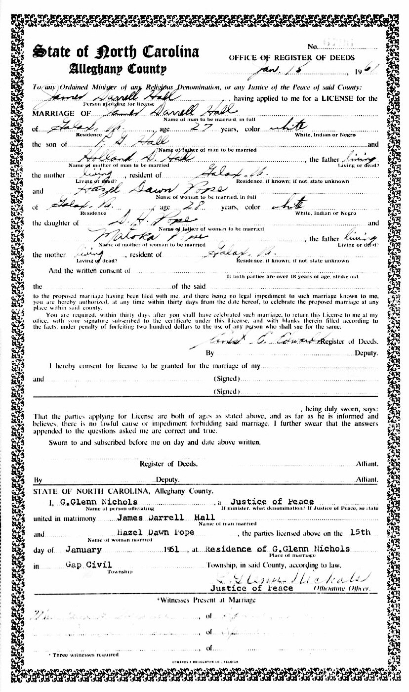 (2) Hazel Dawn Pope January 15, 1961 in Alleghany County, North Carolina.