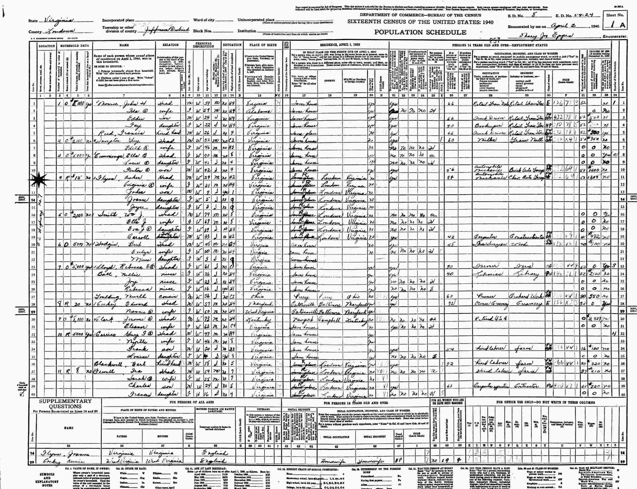 April 2, 1940 - U.S. Hwy #7, Supervisor's District 8, Enumeration District 54-24, Jefferson District, Loudoun County, Virginia.