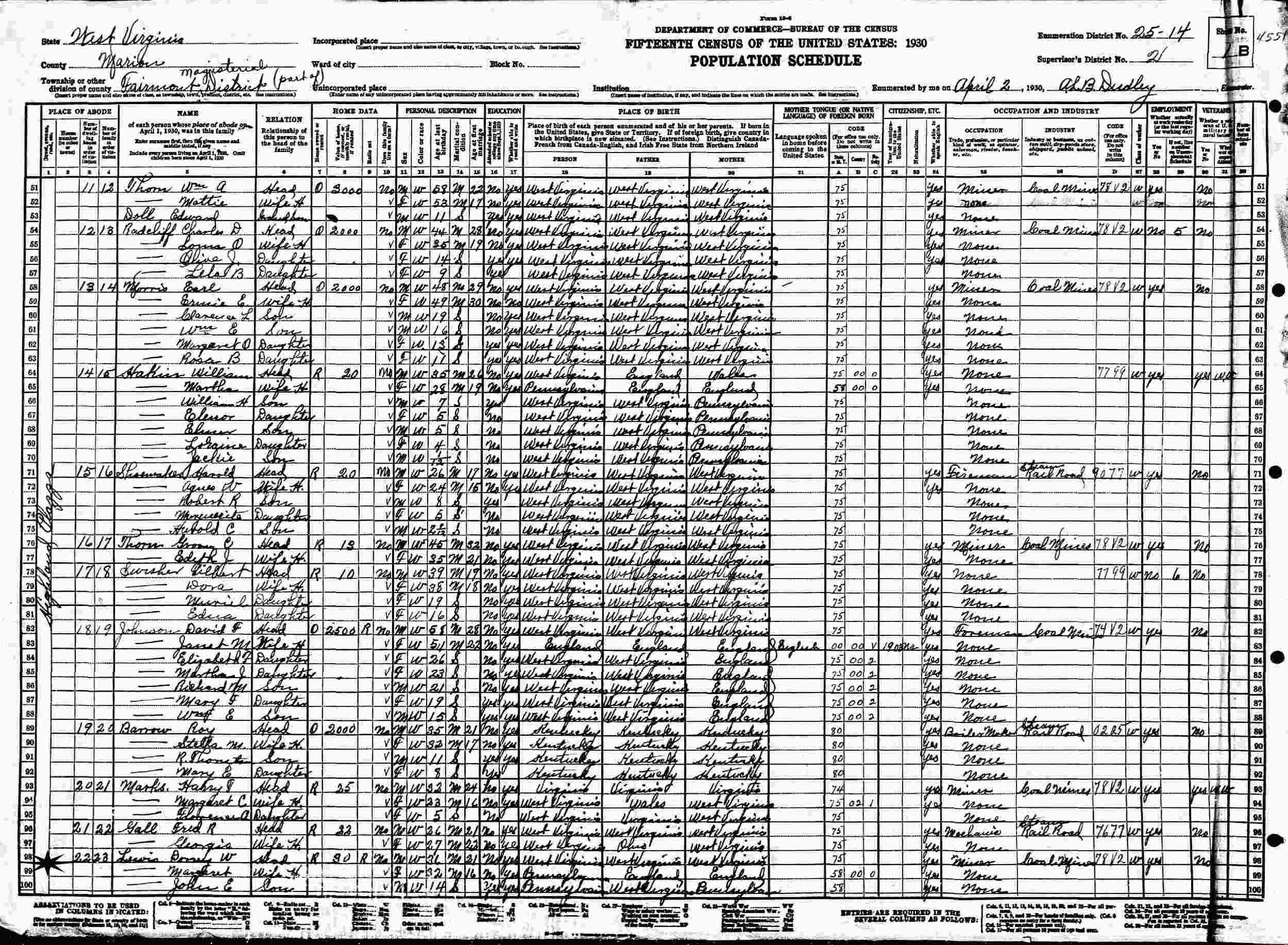 April 2, 1930 - Highland Plazza,Supervisor's District 21, Enumeration District 25-14, Fairmont Magisterial District, Marion County, West Virginia.