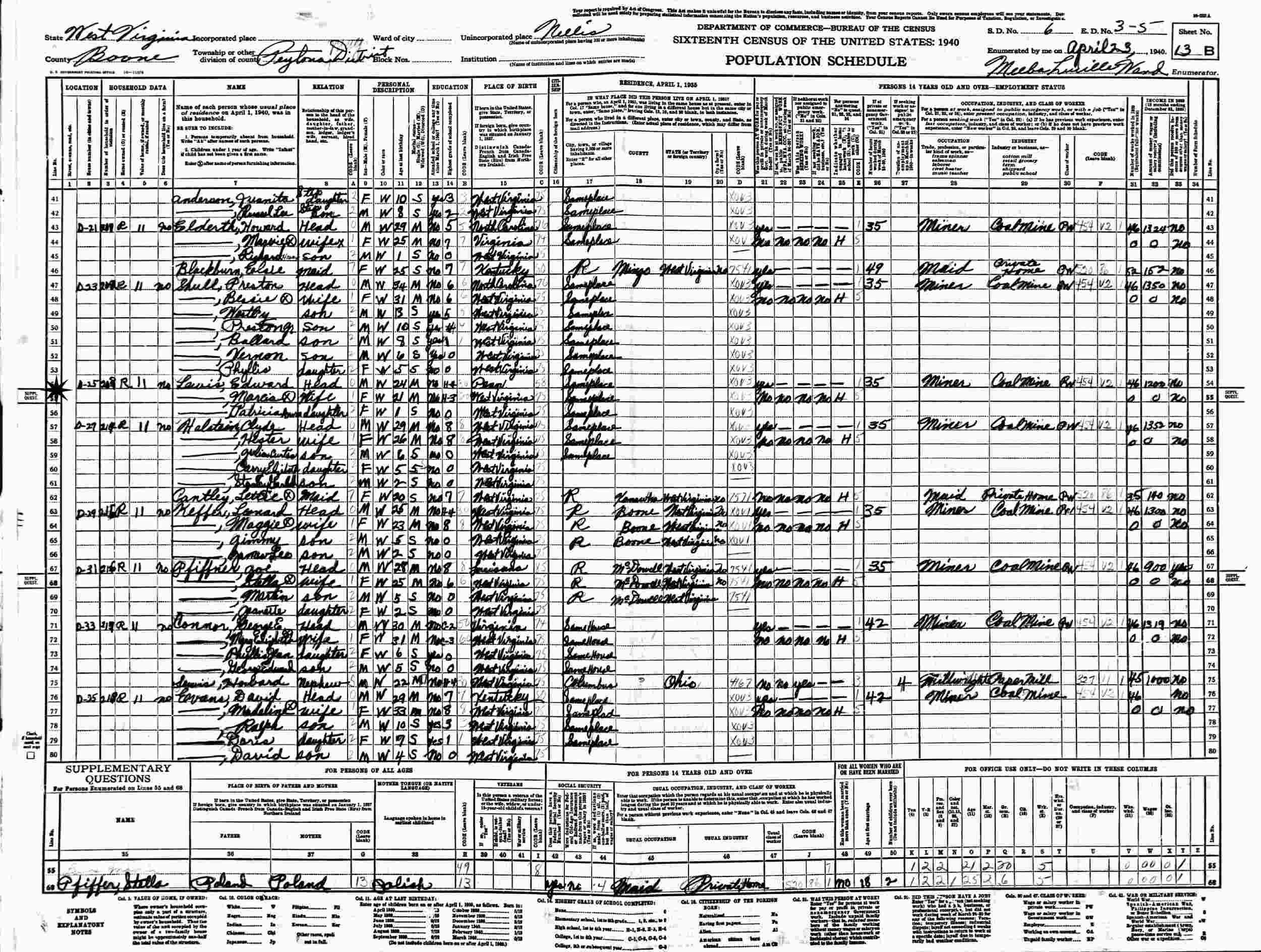 April 23, 1940 - Supervisor's District 6, Enumeration District 3-5, Peytona District, Nellis, Boone County, West Virginia.