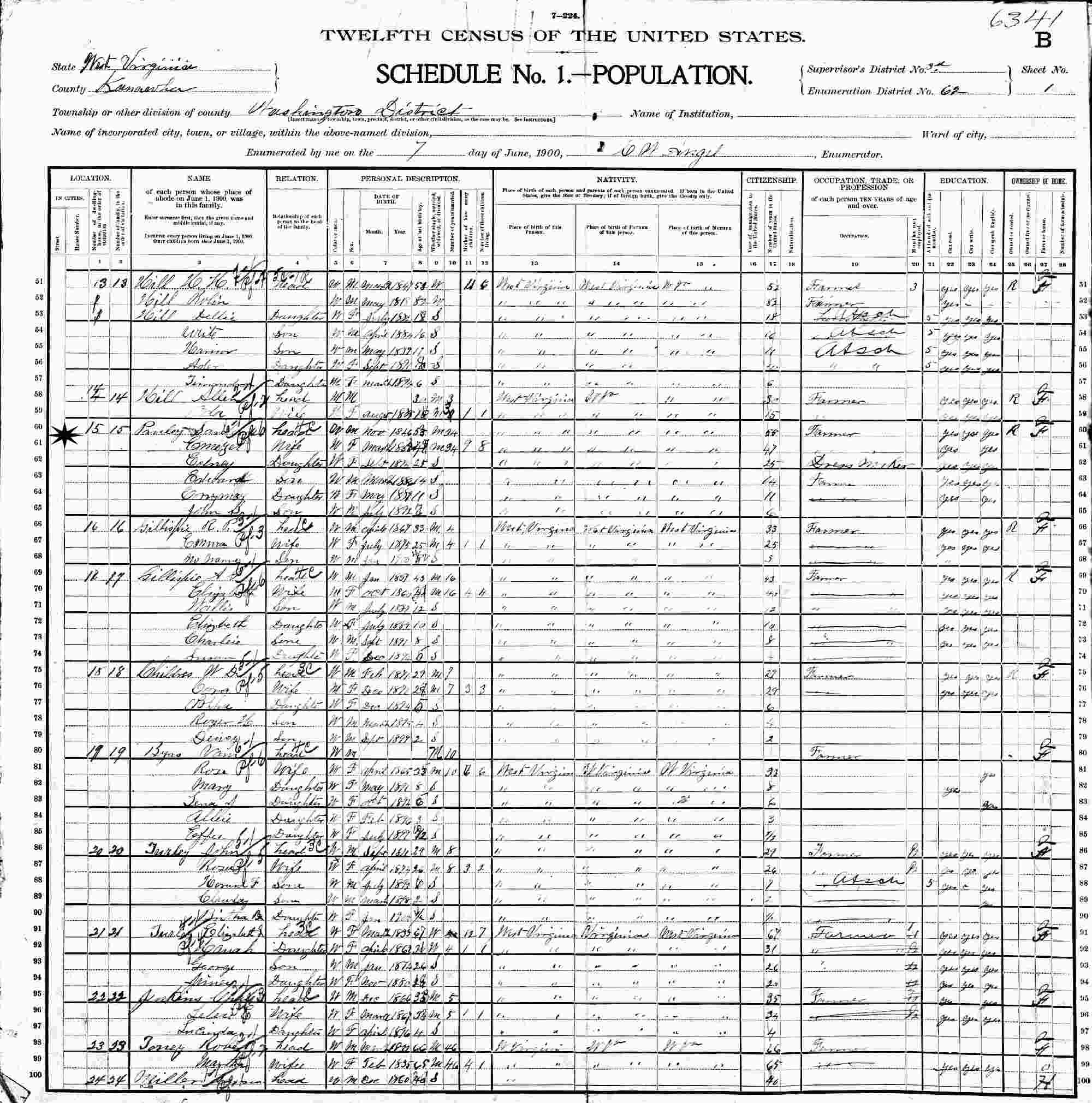 June 7, 1900 - Supervisor's District 34, Enumeration District 62, Washington District, Kanawha County, West Virginia