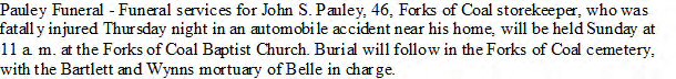 Buried: August 14, 1938 in Forks of Coal Community, Alum Creek, Lincoln County, West Virginia.