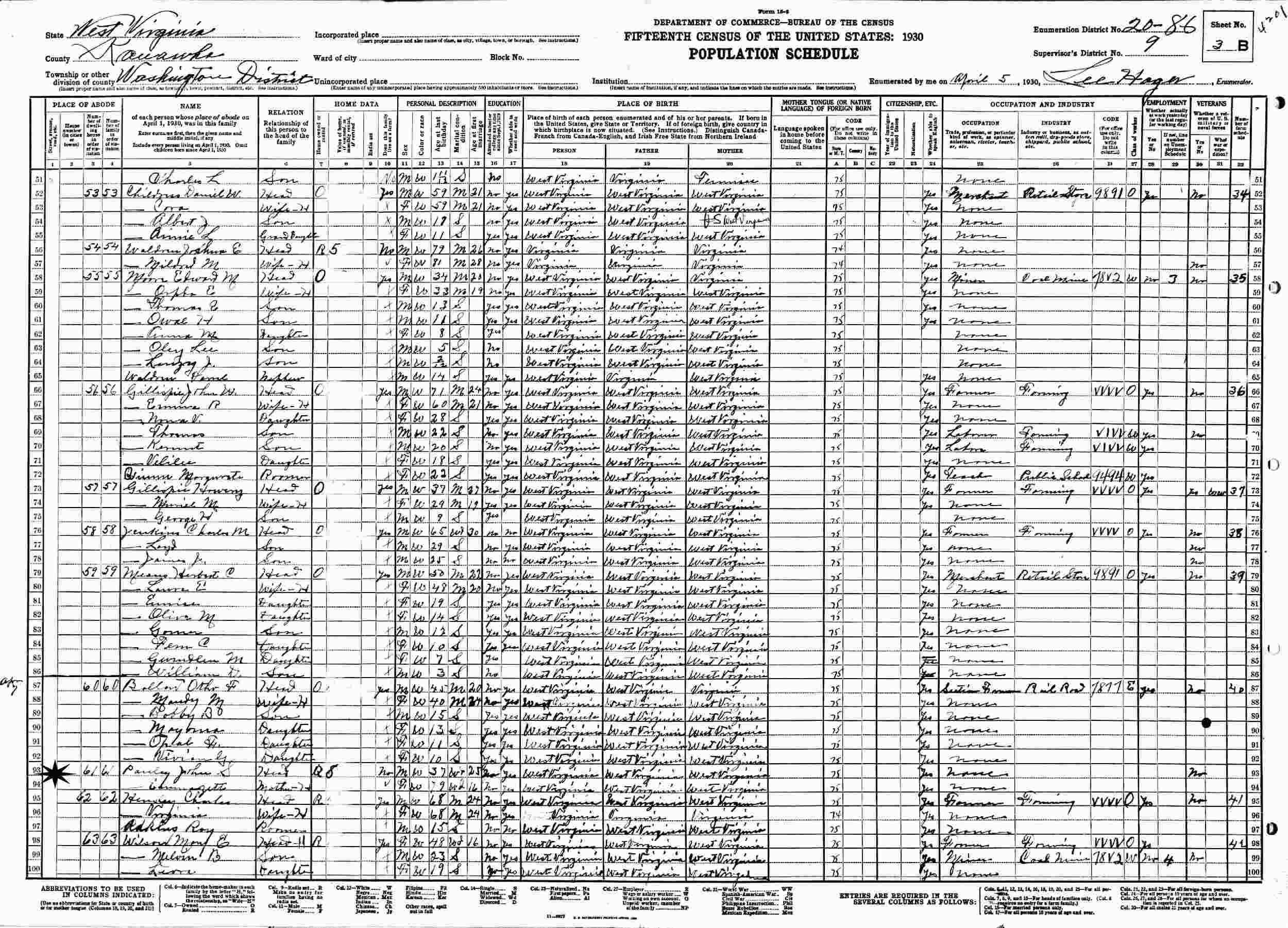April 4-5, 1930 - Supervisor's District 9, Enumeration District 20-86, Washington District, Kanawha County, West Virginia.