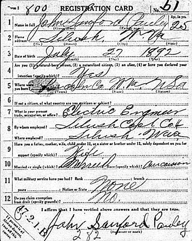 Born: July 27, 1892 in Lincoln County, West Virginia.