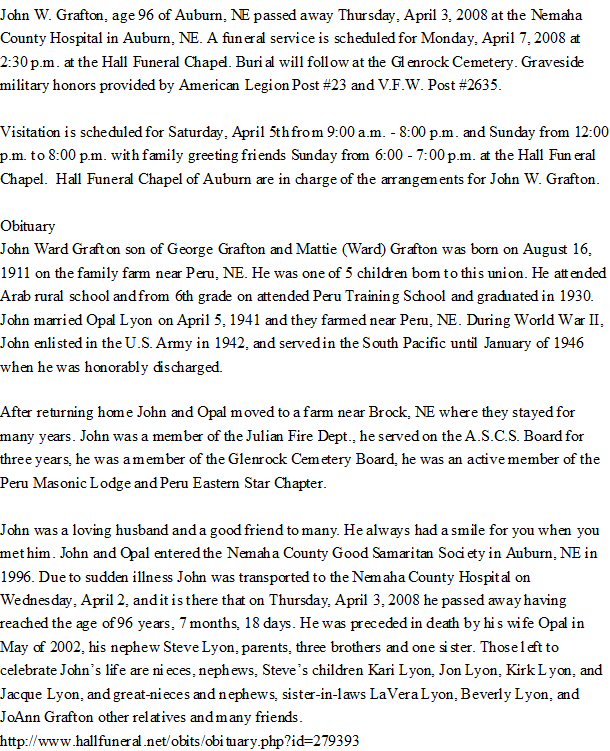 Died: April 3, 2008 in Auburn, Nemaha County, Nebraska.