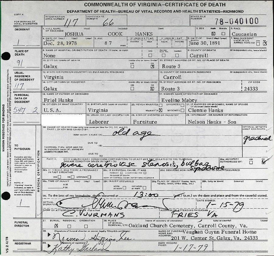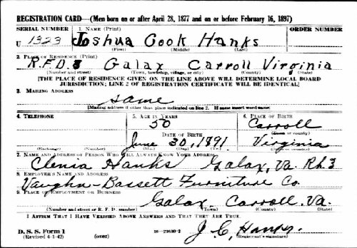 Notes for JOSHUA COOK "JOSH" HANKS: