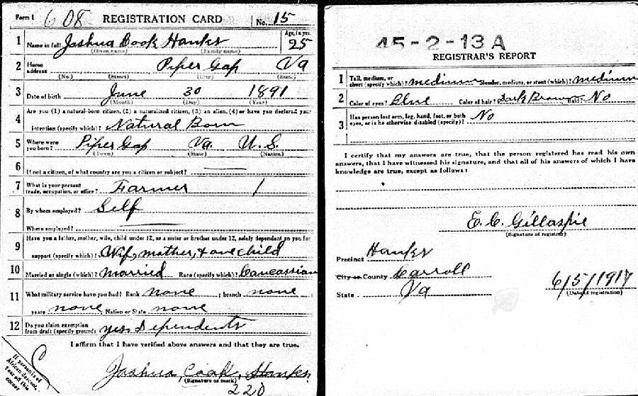 January 26-27, 1920 - Coal Creek Road, Supervisor's District 5, Enumeration District 14, Hanks Precinct, Pipers Gap Magisterial District, Carroll County, Virginia.