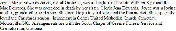 Notes for JOYCE MARIE EDWARDS JARVIS: