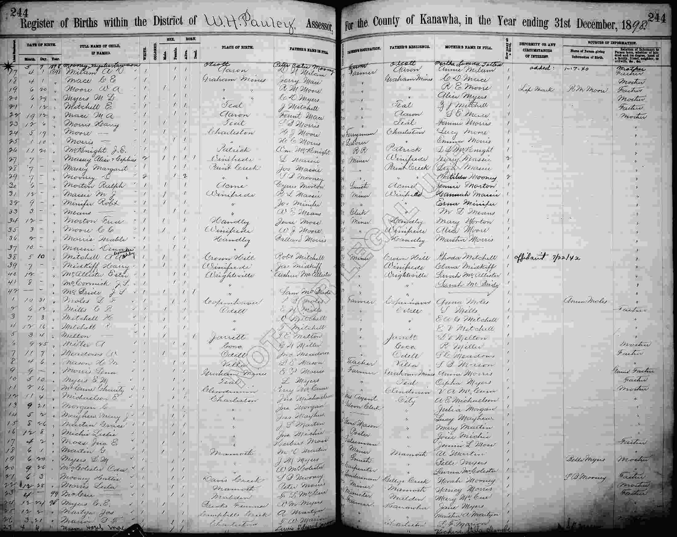 Born: May 07, 1898 in Olcott, Kanawha County, West Virginia.