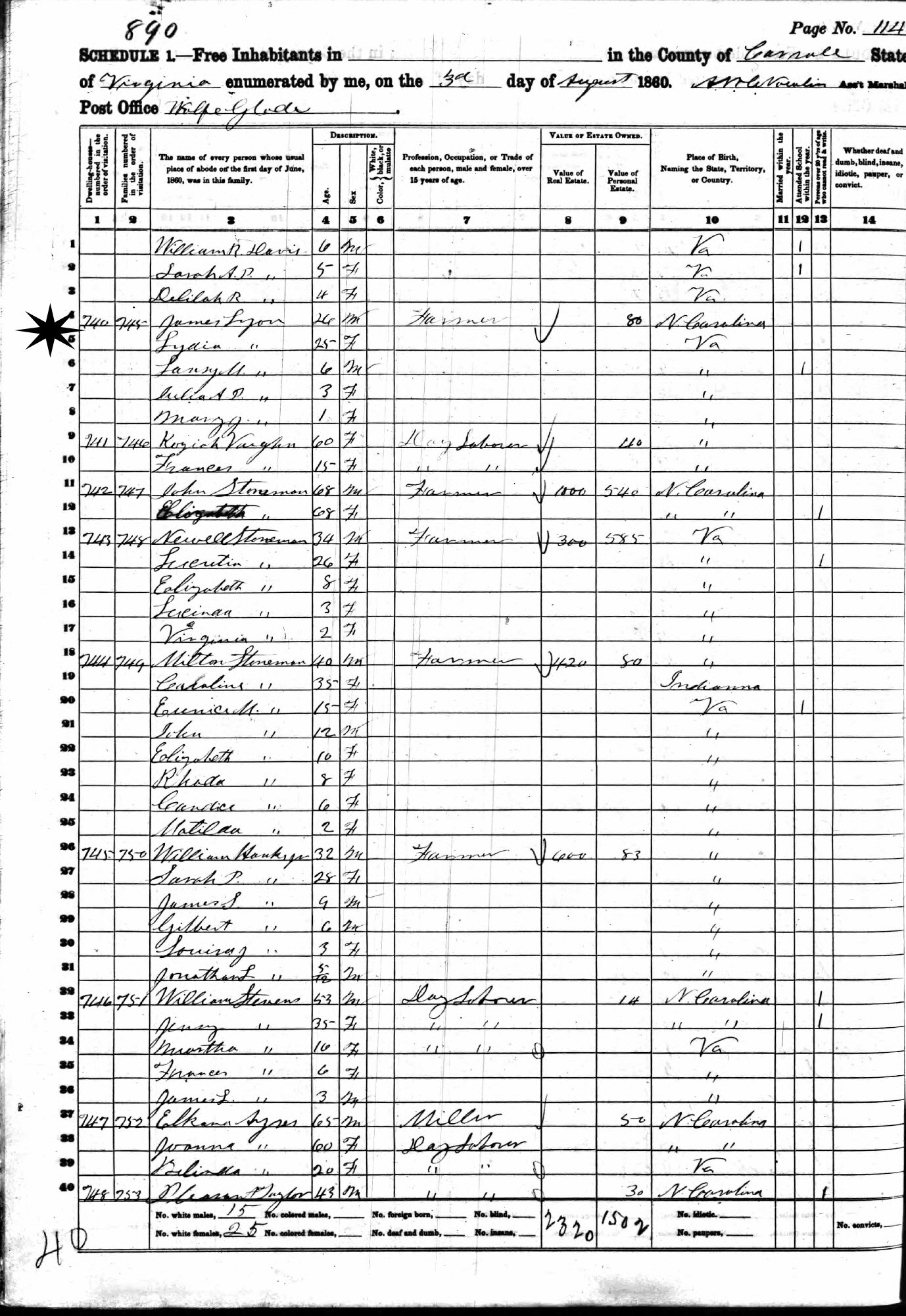 August 3, 1860 - Wolf Glade Post Office, Carroll County, Virginia.