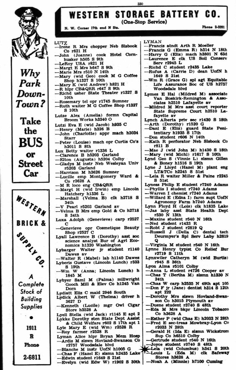 1942 - 341 S 20th, Lincoln, Lancaster County, Nebraska.