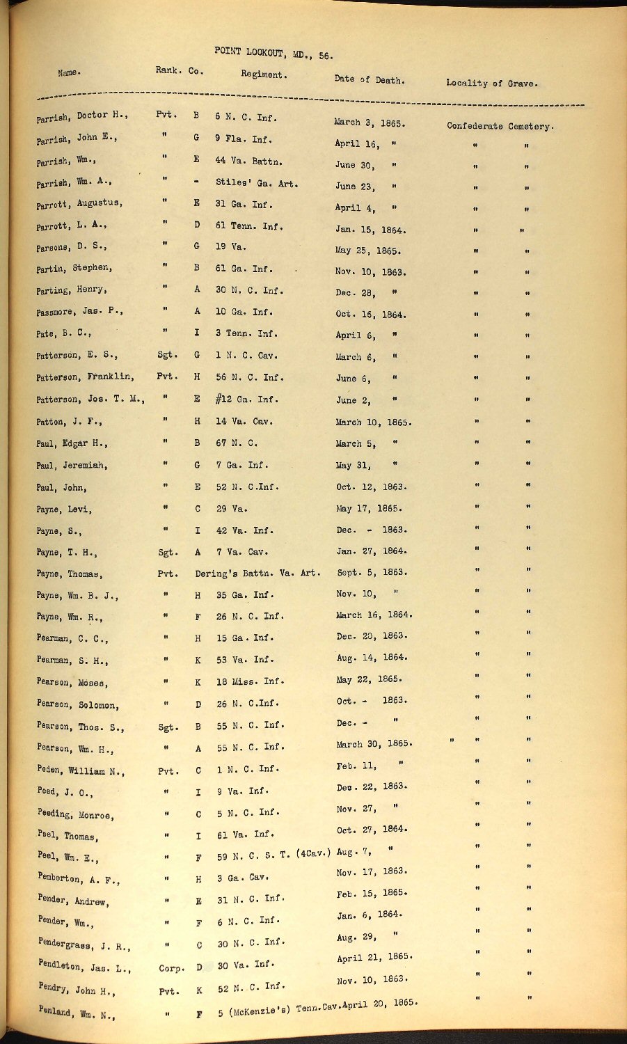 Died: May 16, 1865 in Point Lookout, Maryland.