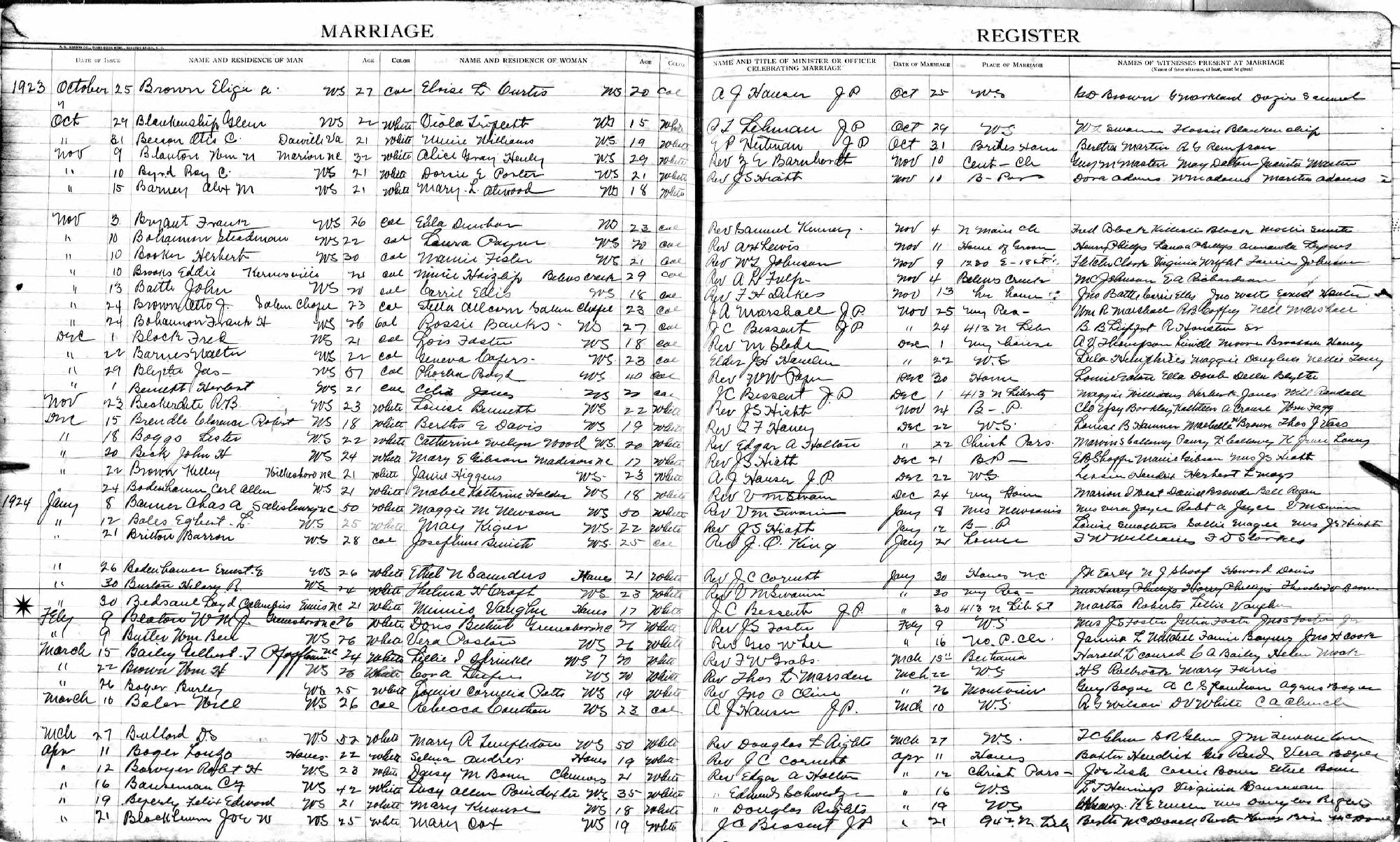 (NOTE: Index has date of marriage as January 3, 1924.)
