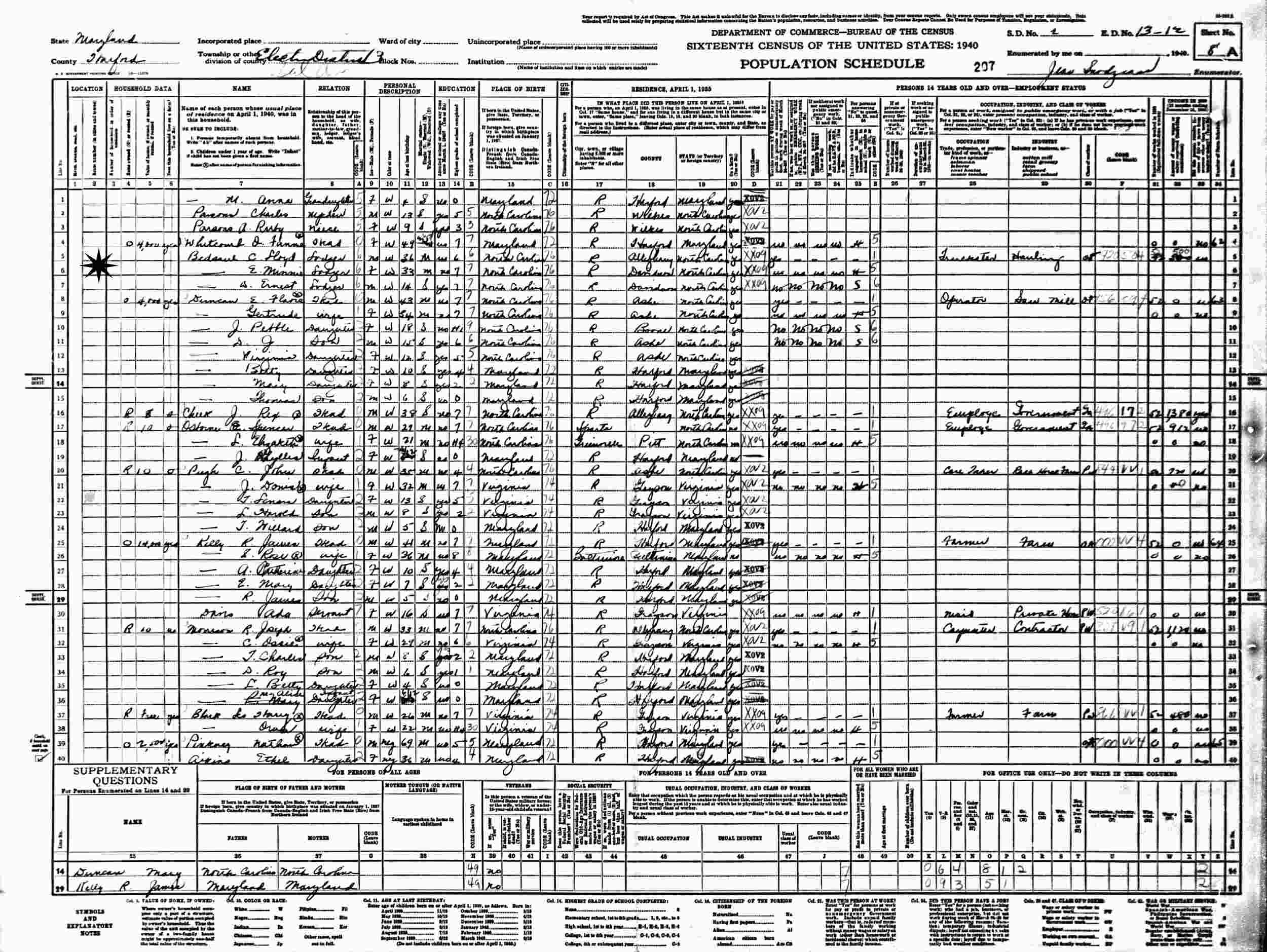 1940 - Election District 3, Supervisor's District 2, Enumeration District 13-12, Harford County, Maryland (Lodger).
