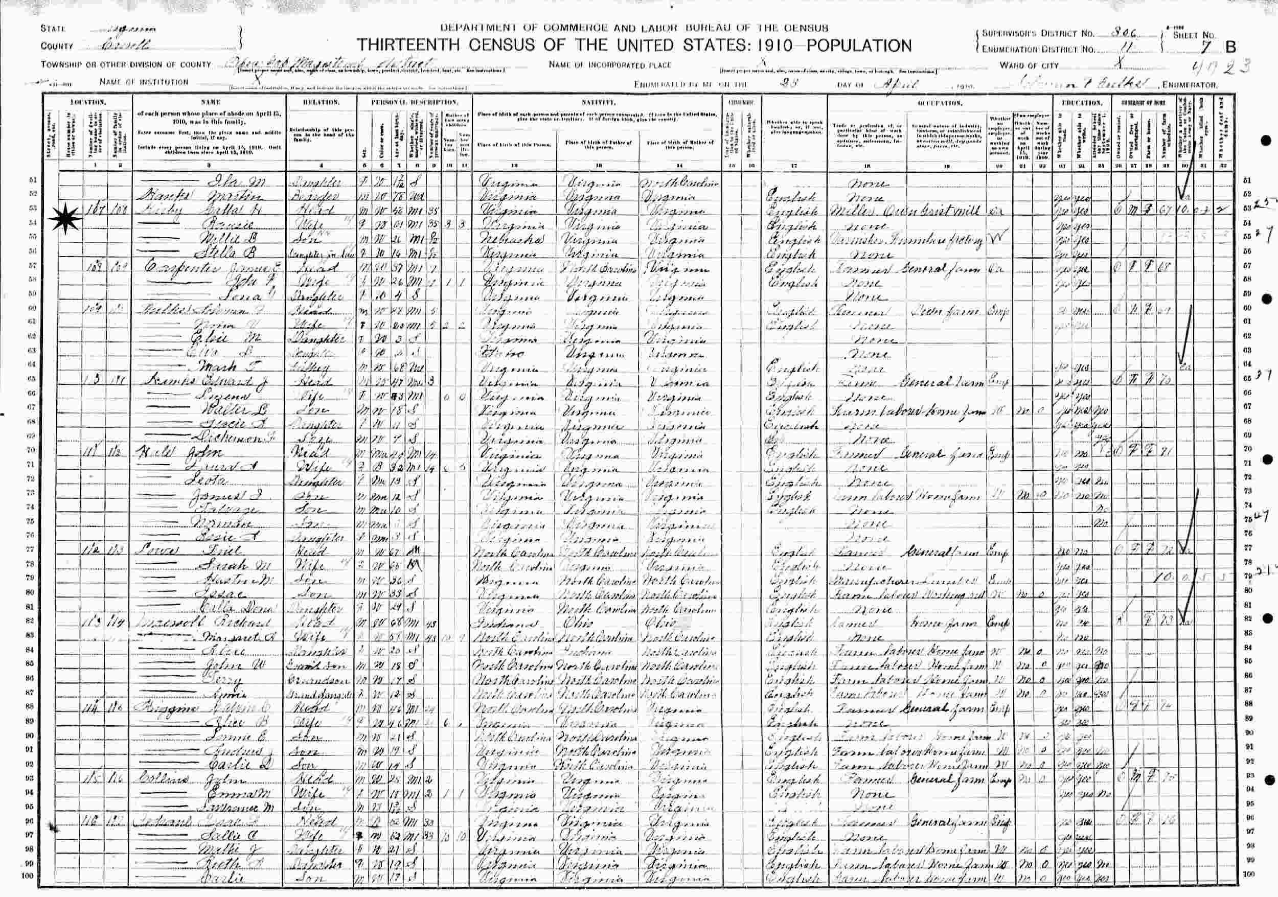 April 23, 1910 - Supervisor's District 306, Enumeration District 11, Pipers Gap Magisterial District, Carroll County, Virginia.