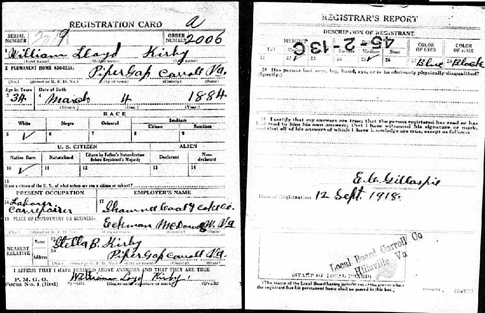 September 12, 1918 - Pipers Gap, Carroll County, Virginia.