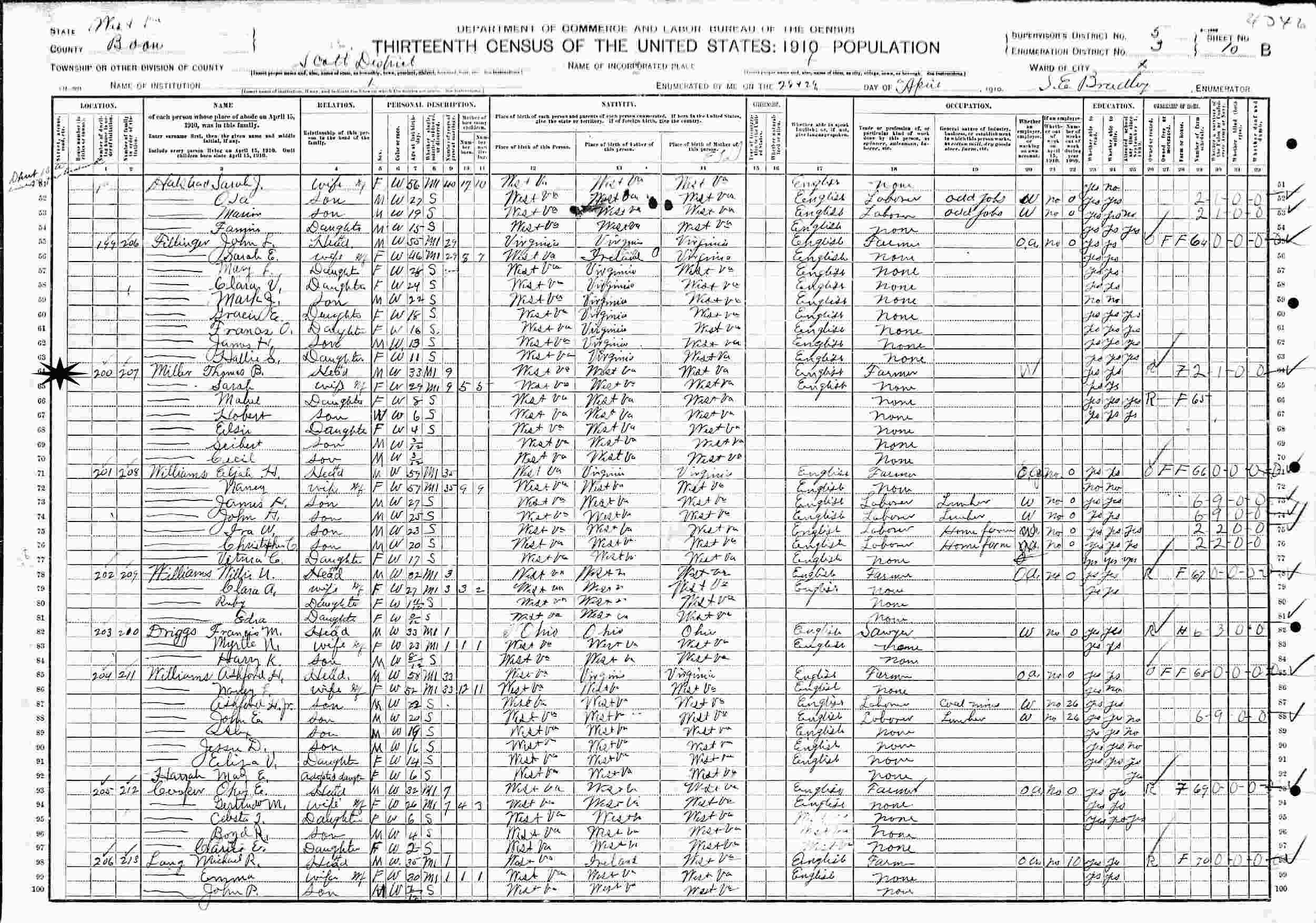 April 28-29, 1910 - Supervisor's District 5, Enumeration District 3, Scott District, Boone County, West Virginia.