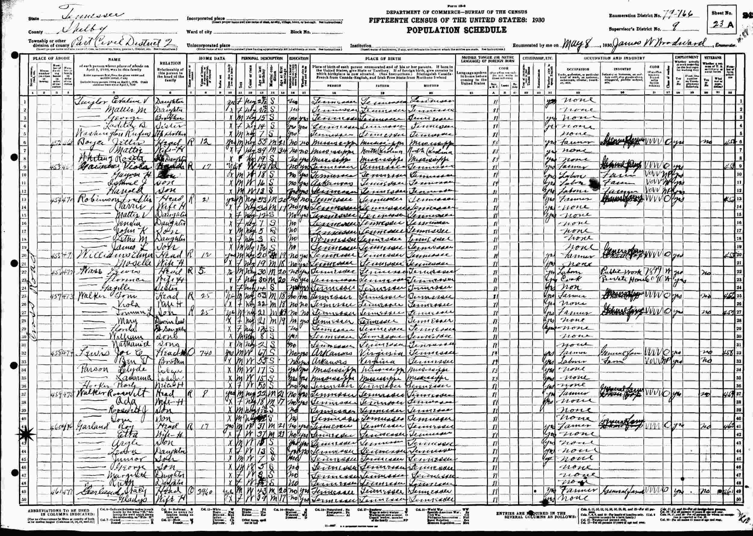 May 8, 1930 - Cross Street, Supervisor's District 9, Enumeration District 79-166, District 2, Shelby County, Tennessee.