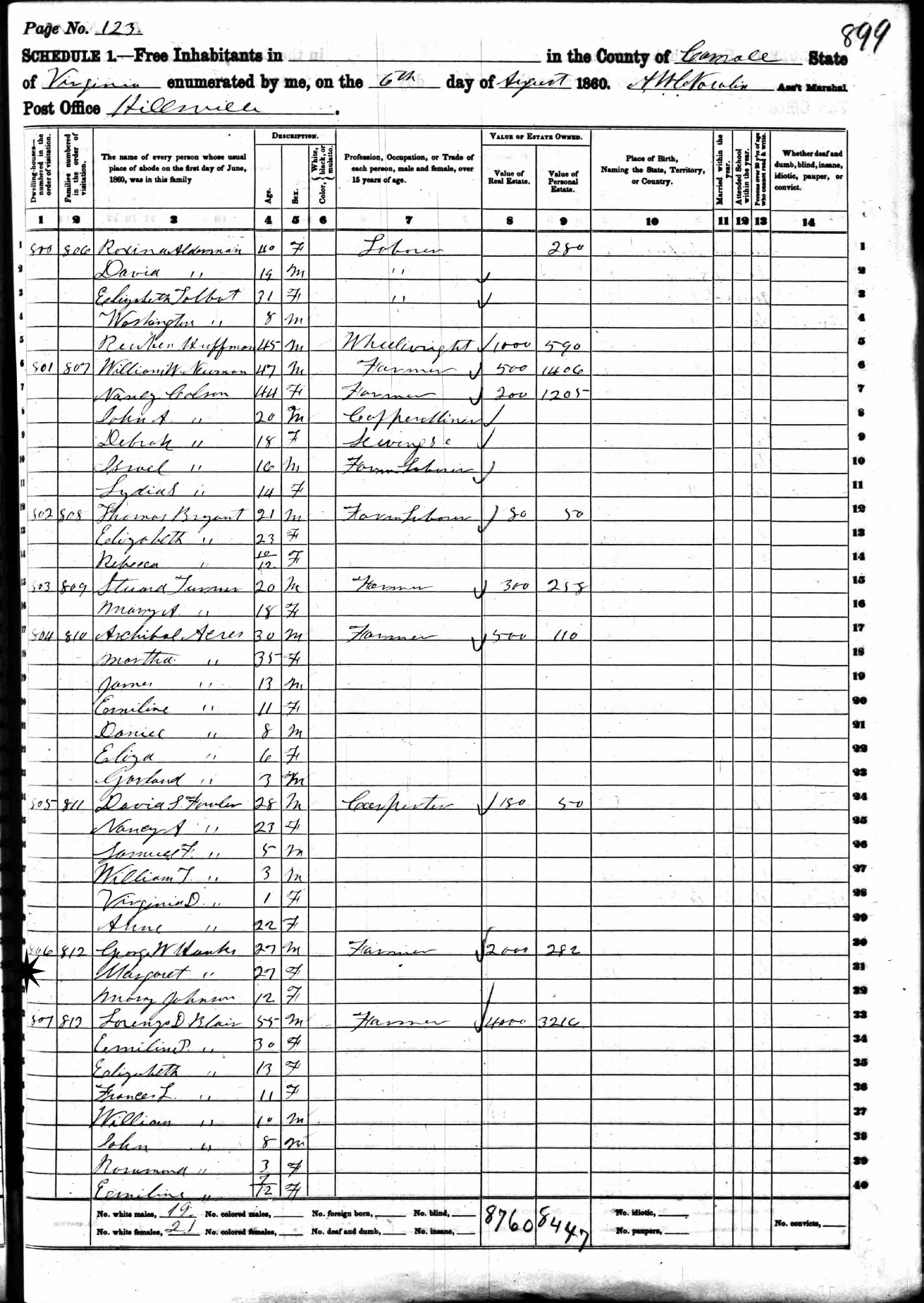 August 6, 1860 - Post Office: Hillsville, Carroll County, Virginia.