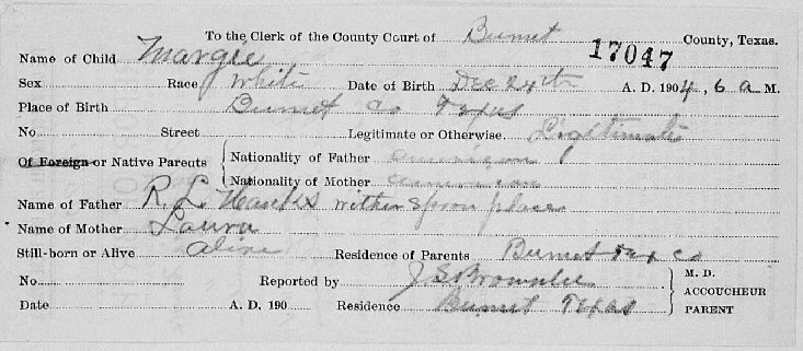 Born: December 24, 1904 in Burnett County, Texas.