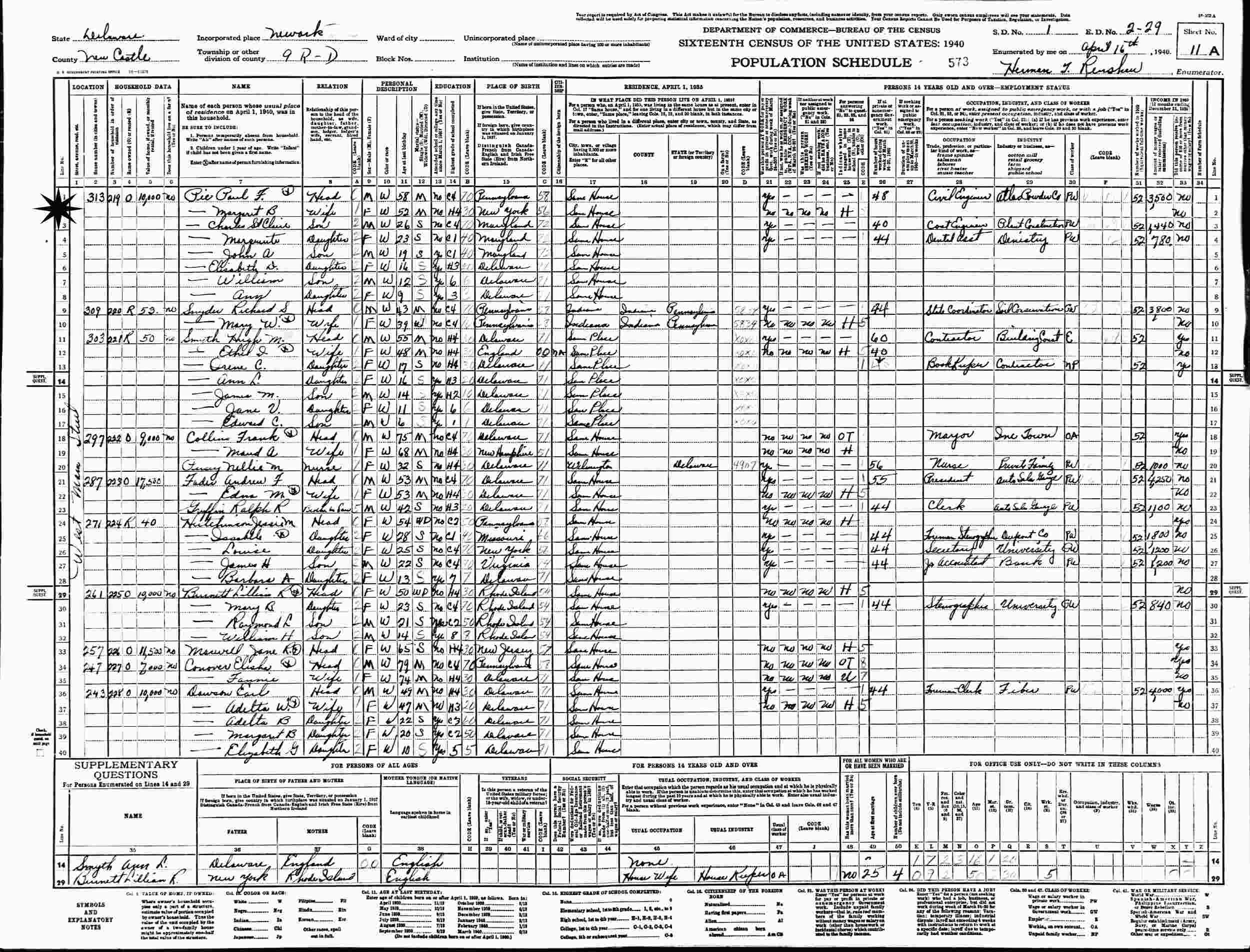 April 16, 1940 - 313 West Main Street, Supervisor's District 1, Enumeration District 2-29, 9 R-D, Newark, New Castle County, Delaware.