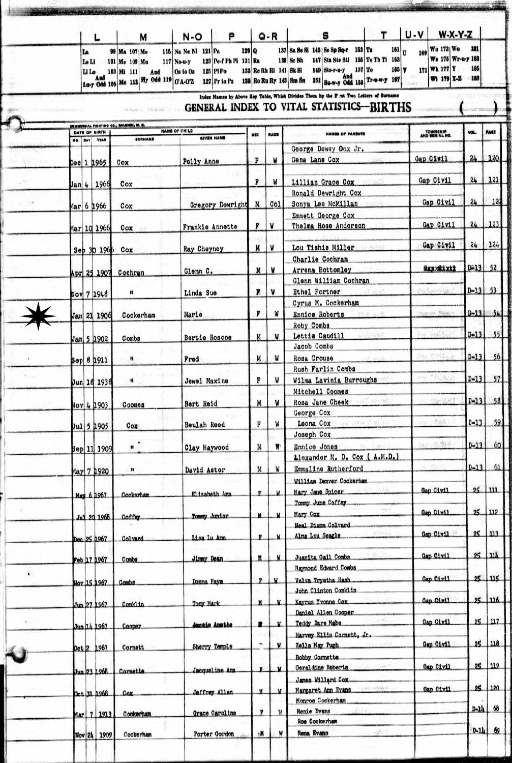 Notes for MARIE COCKERHAM COX:
