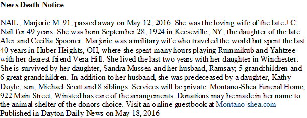 Notes for MARJOIE M SPOONER NAIL: