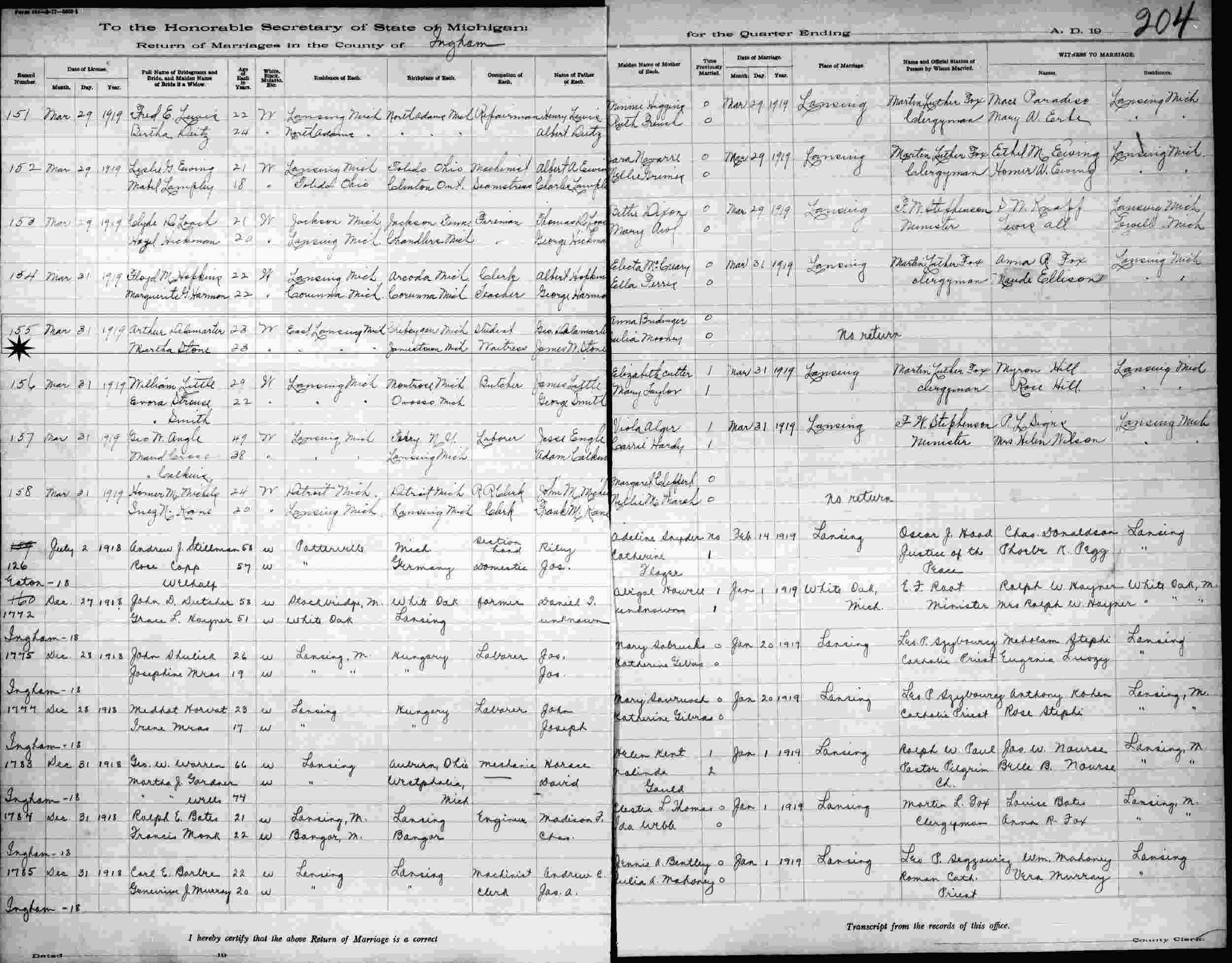 Married: Arthur Ray Delamarter in March 31, 1919 in Lansing, Ingham County, Michigan.
