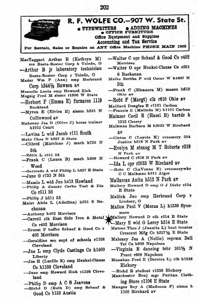 1941 - 514 E State, Fremont, Sandusky County, Ohio.