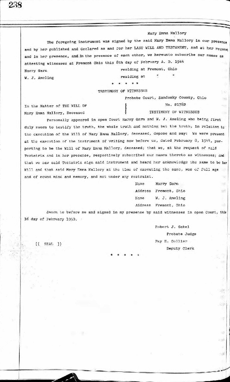 Married: George Leroy "Roy" Mallory June 08, 1909 in New Knoxville, Auglaize County, Ohio.