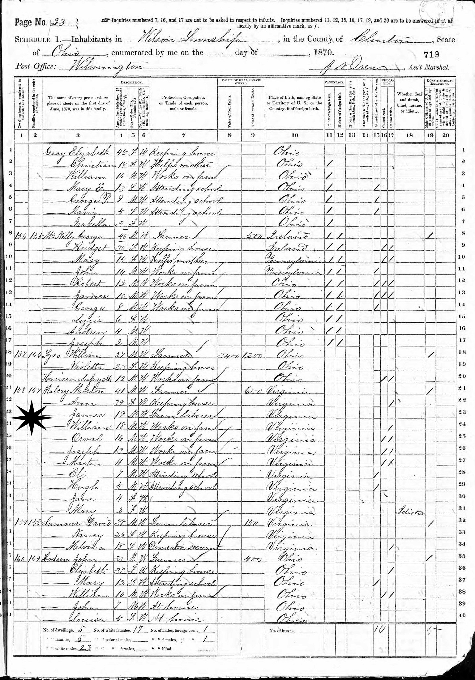 1870 - Wilmington Post Office, Wilson Township, Clinton County, Ohio.