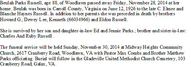 Died: November 6, 2000 in Carroll County, Virginia.