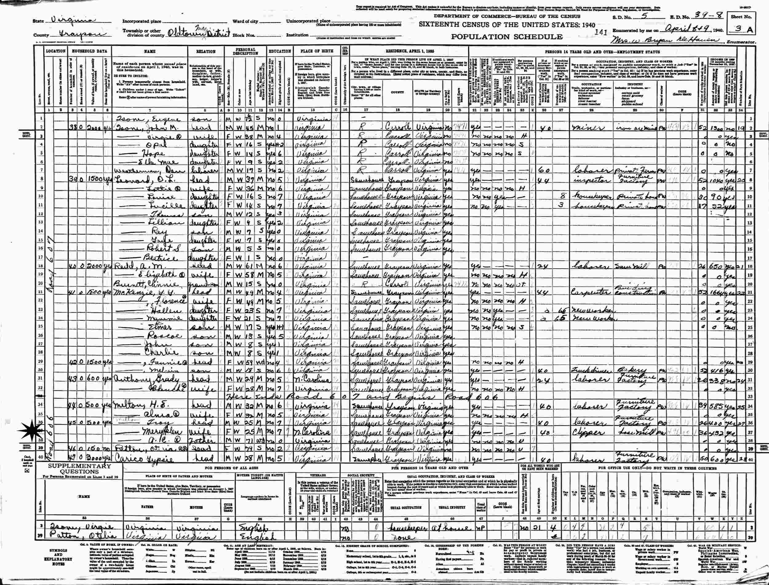 Married: Troy Willis Melton before 1940 in Unknown. (He was born February 13, 1915, Oldtown, Grayson County, Virginia; d. May 2, 1979, Galax, Virginia; buried: Plot: Row 10; Ballard Cemetery, Galax, Virginia.)