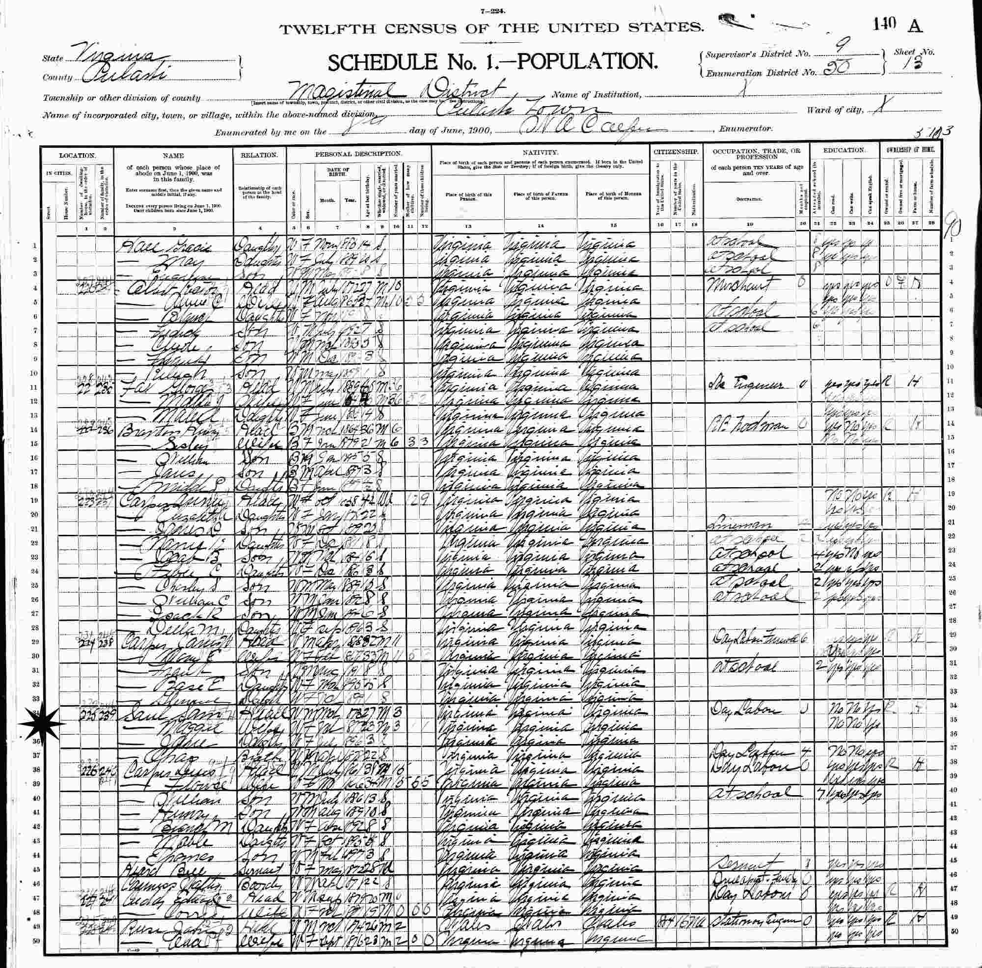June 8, 1900 - Supervisor's District 9, Enumeration District 50, Pulaski, Pulaski County, Virginia.
